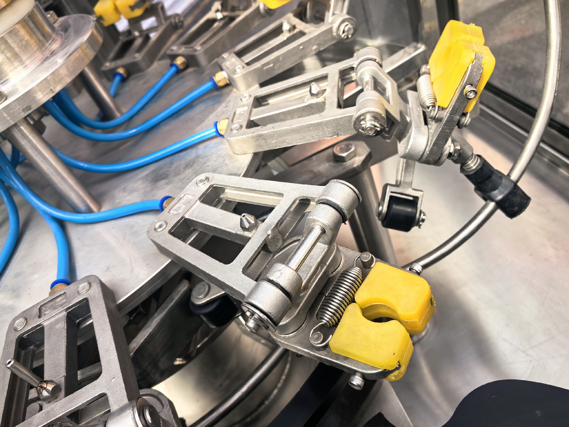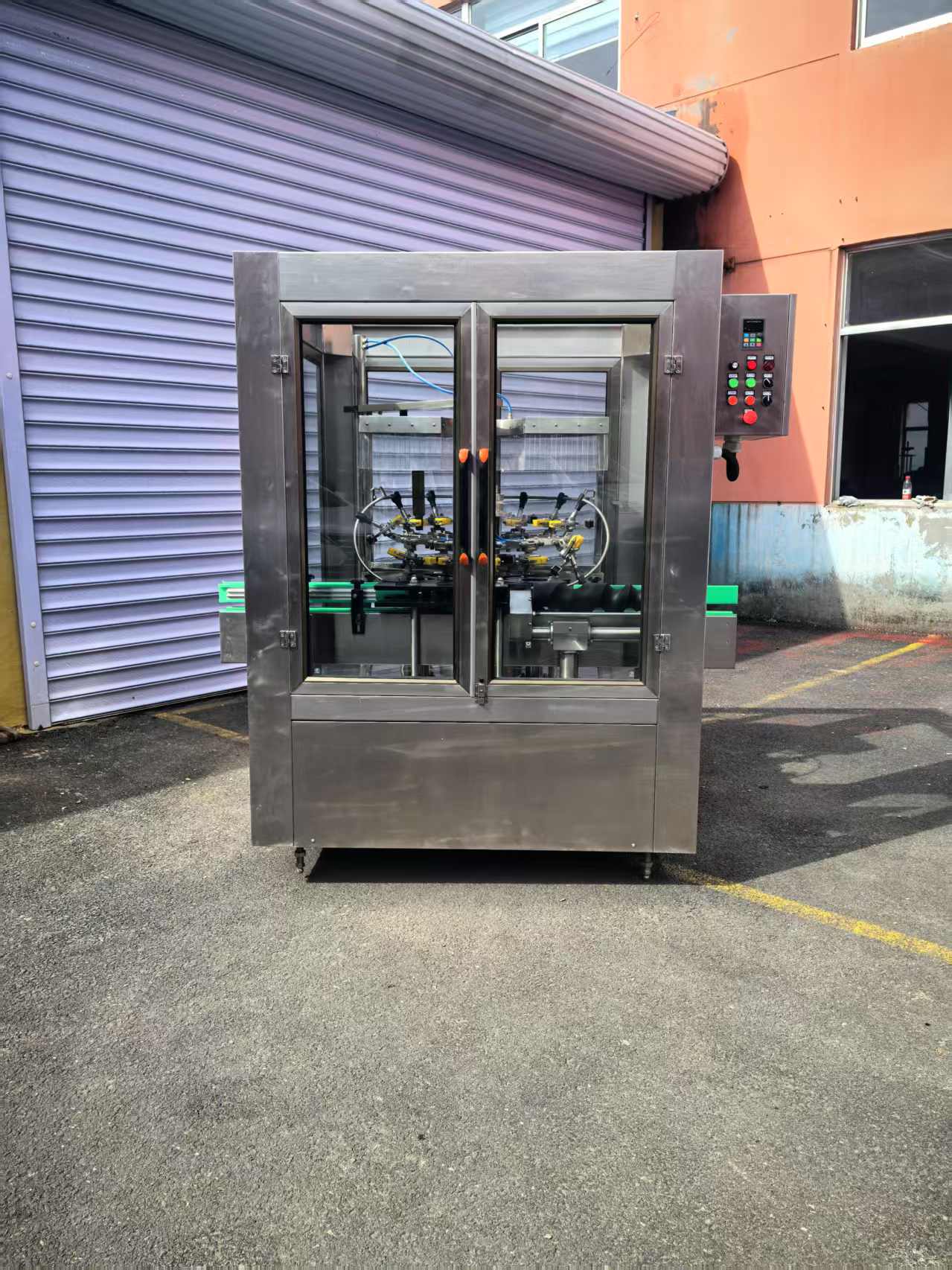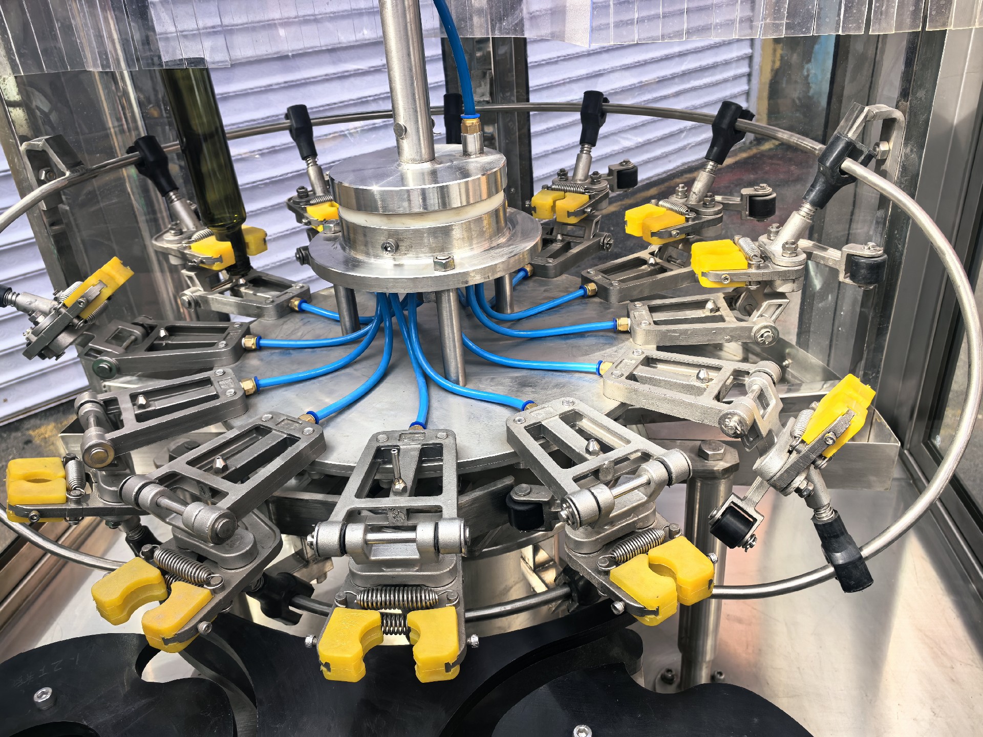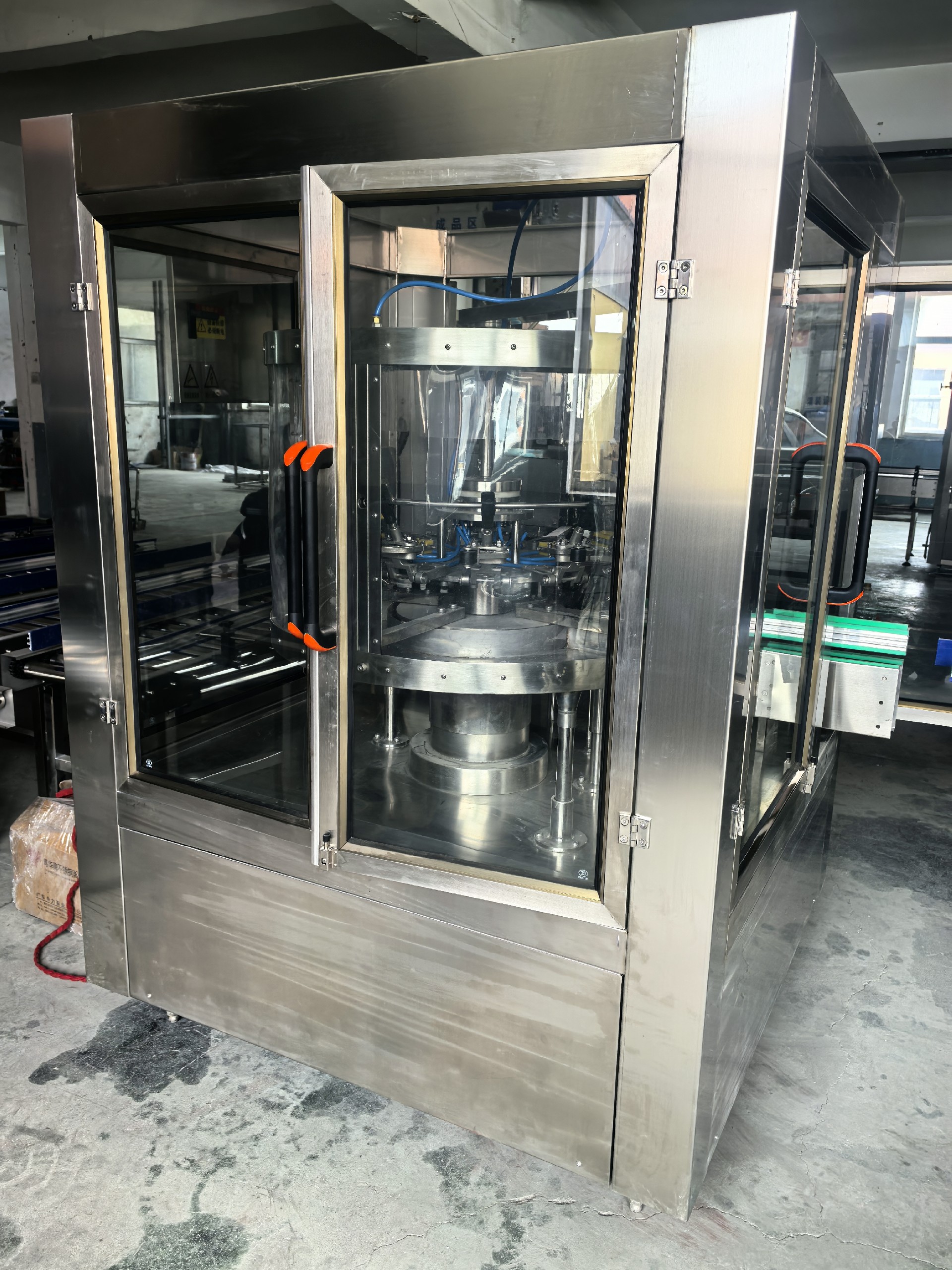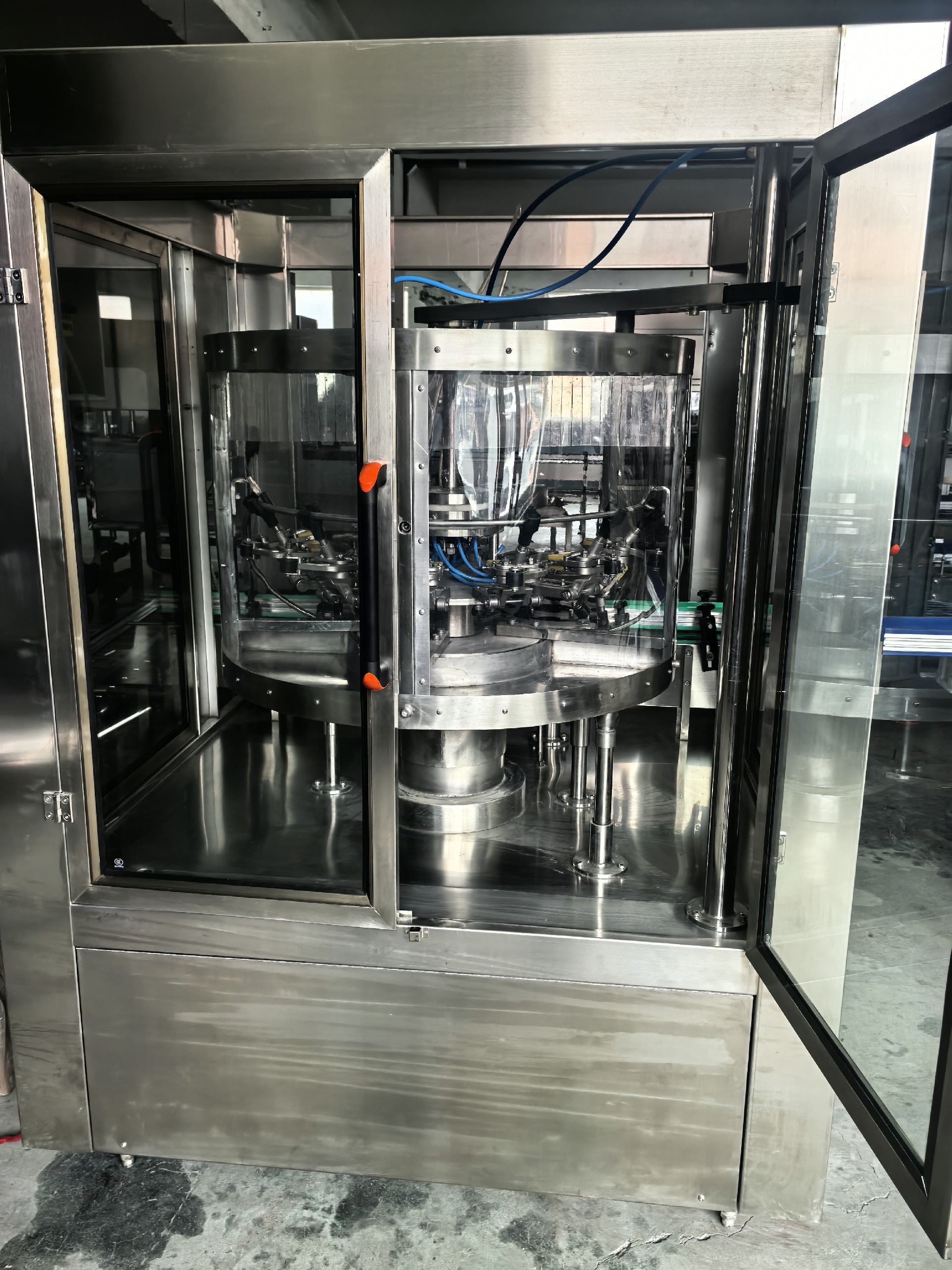 全自動旋轉(zhuǎn)式空氣洗瓶機是一種適用于食用油玻璃瓶等生產(chǎn)線的自動空氣沖洗瓶設(shè)備。該機設(shè)計合理,結(jié)構(gòu)嚴謹,封閉式生產(chǎn)確保生產(chǎn)過程中不受污染。與其它同類產(chǎn)品相比,優(yōu)點在于:沖瓶速度快,該機沖瓶速度達到1500-3000瓶/h;變頻調(diào)速,可根據(jù)生產(chǎn)需要任意調(diào)整;分氣閥嚴格控制沖瓶與控瓶時間保證瓶子沖洗干凈;先進的夾爪加工精密,工作可靠,使用壽命長。