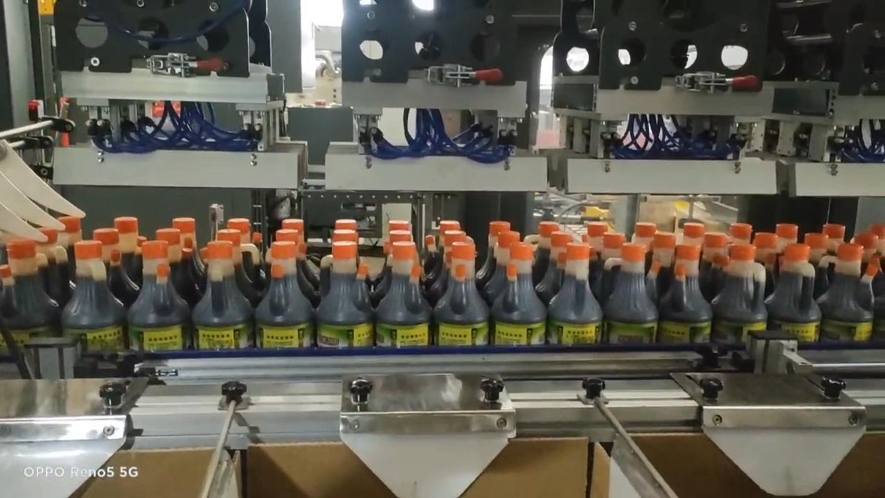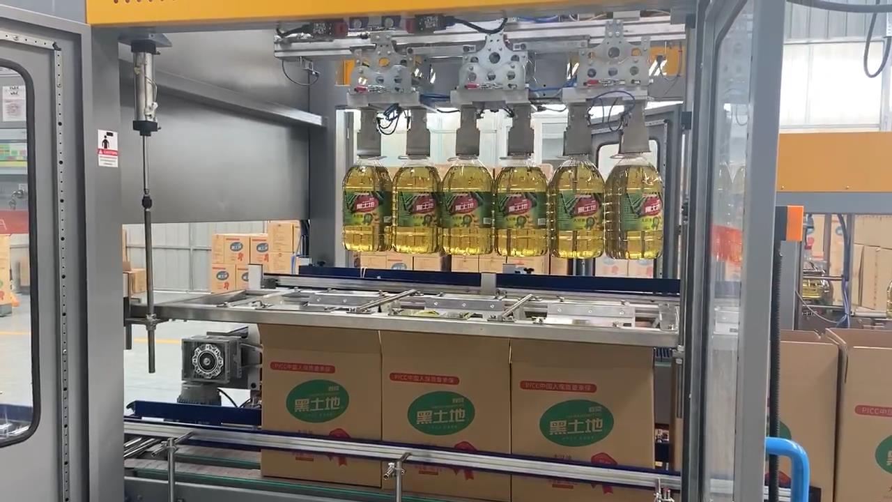 本設(shè)備為抓取式裝箱機(jī),適用于各類PET、PVC材質(zhì)瓶型,裝箱速度為2000瓶小時(shí)(5L),由三菱可編程控制器自動(dòng)控制進(jìn)瓶,裝箱等過程,并采用進(jìn)口電器元件和氣動(dòng)元件,保證系統(tǒng)運(yùn)行穩(wěn)